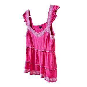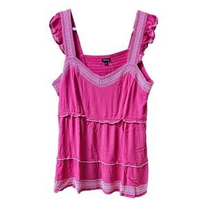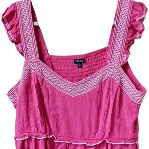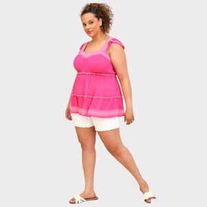 TORRID NEW Plus Size Babydoll Crinkle Gauze Embroidery Tiered Tank Top.
