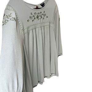 TORRID PLUS SIZE Long sleeve seagrass crinkle gauze embroidery blouse Size 4X