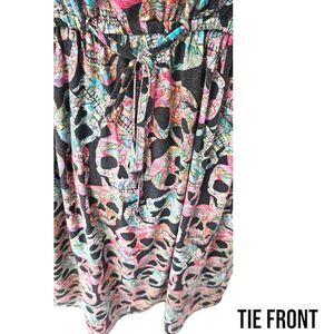 Women's Plus Size Gothic Multi- Color Skull Ruffle & Tie front Slip dress.