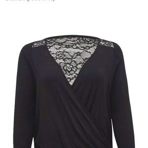 TORRID Plus Size New Black Knit Rayon Span Surplice Lace Back Long sleeve Top.