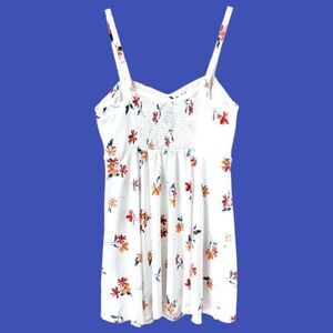 ALL OVER FLORALS STAND OUT AGAINST A WHITE BASE FOR AN EASY SUMMER CHOICE, THAT'LL FLAUNT YOUR CURVES IN ALL THE RIGHT WAY. A SHIRRED BACK & PRINCESS SEAMS INSURES THAT PRRFECT FIT WHILE STREAMLINING YOUR FIGURE.