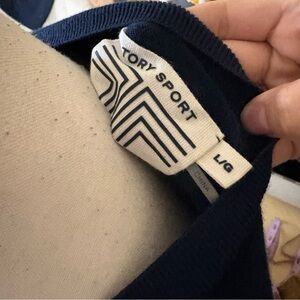 TORT BURCH Merino Wool Chevron Sweater Navy White Chevron Size Large