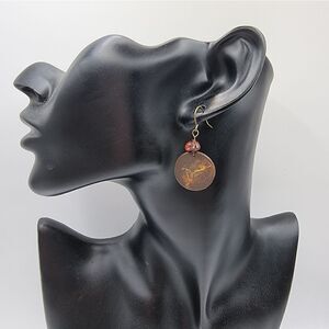 TORTISE CHOCOLATE circle round bead dangle earrings