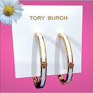 Elegant Tory Burch hoop earrings in sleek white enamel. Perfect for any occasion.