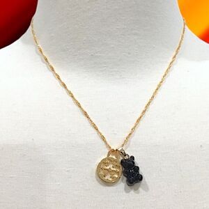 The combination of Tory Burch Charm 18k gold plated logo and 18k gold plated nostalgic Gummi bear charm makes this necklace not just a piece of jewelry, but also a conversation starter that brings back sweet memories of carefree days filled with laughter and fun.