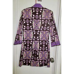 TORY BURCH 4 Stretch Cotton Caftan Dress Ikat Boho Purple Tribal Print Superb!