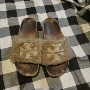 TORY BURCH #86711 Double T Shearling Flatform Cork Slide Sandals Almond Size 8