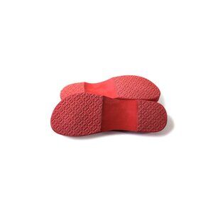 o The upper is rubber in Coral with Tory's signature logo in goldware. Excellent.