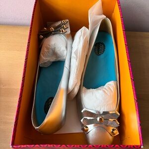 TORY BURCH “AURORA” SILVER METALLIC CLEAR LUCITE HEEL SHOES BRAND NEW IN BOX