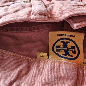 TORY BURCH Alexa Cropped Skinny Jeans Coral Pink Low Rise Stretch size 28 in good condition, see photos for detail. Measurements also included in photos.