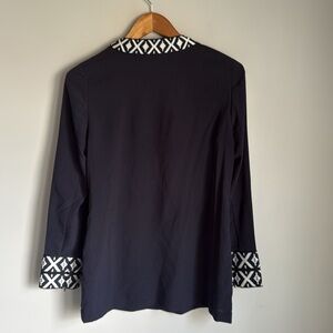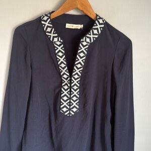 TORY BURCH Ariana Navy Embroidered Taping Side Zip Tunic Top