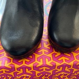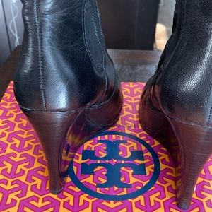 On trend wedge bootie worn once. I recommend these for a size 8 even though it is marked 8 1/2. Make your legs look long and sleek. Supple leather, and flawless wedge and toe.