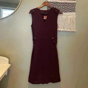 Size S. Tory Burch burgundy dress. Perfect for casual or dress up. Adorable neckline and belt. Shows some wear on inside hem please see photos. Excellent used condition with lots of life left. Reasonable offers welcome!