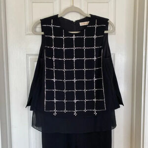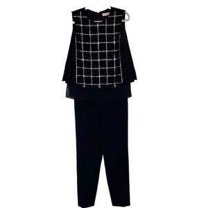 TORY BURCH Betsy Jumpsuit Beaded Black White Metallic Size Small Elegant Chic