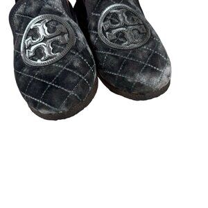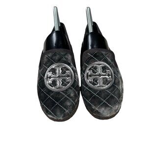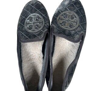 TORY BURCH Billy Quilted Velvet Logo Shearling Lined Loafers Flats Sz 8