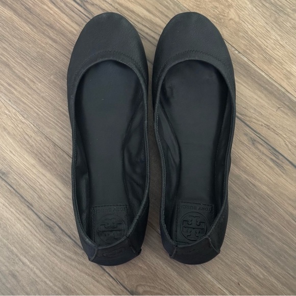 Tory Burch Eddie black leather ballet flats. Logo on back. Good preloved condition. Best fit a size 8-8.5