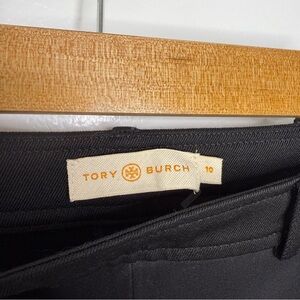 Tory Burch Black Equestrian Riding Pants / Breeches. Side Zip and Button Closure. Gold Buttons and Zipper Details. Zipper Pocket. Slim and Stretchy. Excellent Condition. No Flaws. Size 10.