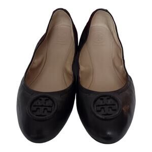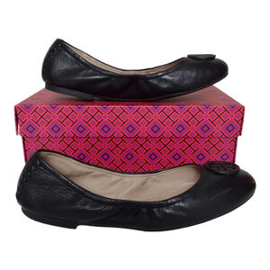 TORY BURCH Black Leather Ballet Flats Size 8.5 Shoes Elasticized Basic Simple