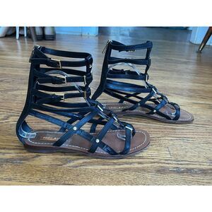 TORY BURCH Black Leather Gladiator Strap Sandals Shoes Women's Size 7.5