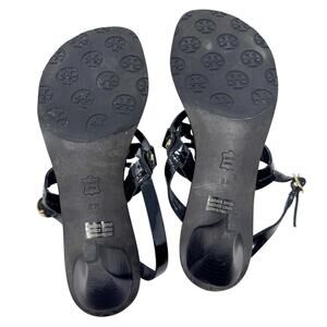 TORY BURCH Black Patent Leather Miller Kitten Heels Sandals Logo Classic Size 8