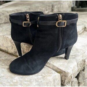 TORY BURCH Black Suede Buckle Ankle Booties Boots Size 8.5