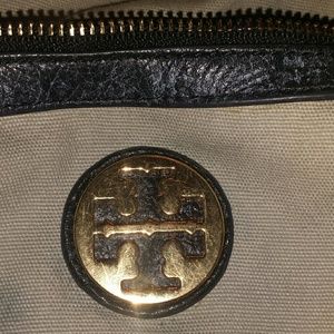 Square shaped purse with short handles with a tory Burch gold medallions. Can not authenticate as I bought used. One large pocket inside with 2 small pockets on oppositr sides. Some wear on the handles. GUC.