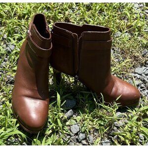 TORY BURCH Bristol Chestnut Smooth Leather Equestrian Calf Ankle Booties Sz 8M