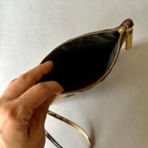 TORY BURCH Brown Tie Dye Patent Leather Finish Medium Wristlet