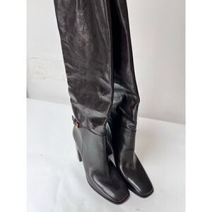 TORY BURCH Buckled pebbled-leather boots brown size 9