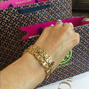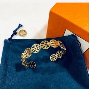 TORY BURCH LOGO CIRCLE BRACELET Beautiful and Chic Logo Bracelet signature jewelry style featuring double-T logo. Hard-cast in brass and 18k gold plated, the bangle is effortless to slip on. Wear it to add high shine and a hint of glamour to your look.MRSP $125 NWT. Comes with TORY BURCH jewelry pouch