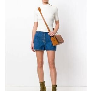 TORY BURCH Carey Mockneck Sweater Ivory Gold Logo Buttons {3Q54}