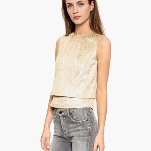 TORY BURCH Cathy Gold Jacquard Brocade Sleeveless Shell Top Blouse Size 10