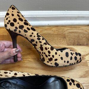 TORY BURCH Cheetah Print Shoes Leather Calf Hair Heels Stiletto Platform Sz 7