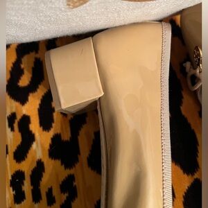 These patent leather nude block heel pumps are perfect for everyday wear! These are brand new, maybe tried on.