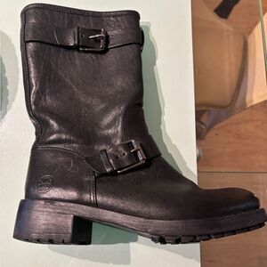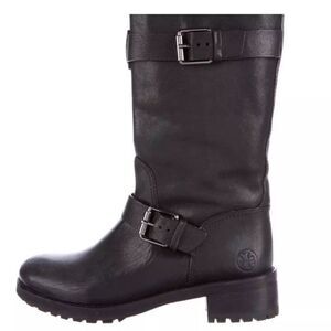 TORY BURCH | Chrystie Lug Sole Black Leather Moto Buckle boot sz 7