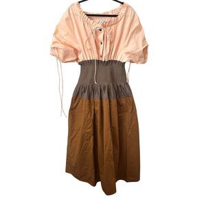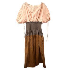 TORY BURCH Colorblock Off Shoulder Poplin Maxi Dress NWT Sz 6
