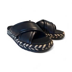 TORY BURCH Crisscross Espadrille Slides Black Tan Black Leather Logo 8