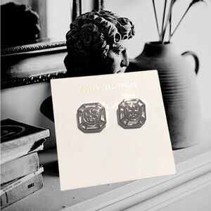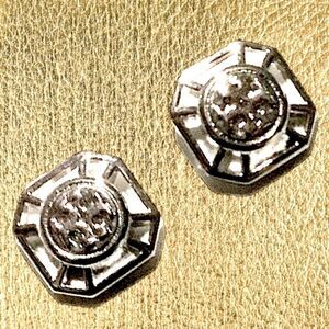 TORY BURCH DOUBLE T LOGO STUD SILVER EARRINGS
