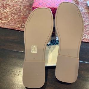 TORY BURCH DOUBLE T SPORT SLIDE SANDAL , almond flour ,SZ 9.5, worn once