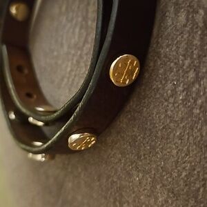 Add a touch of luxury to your wrist with our TORY BURCH Dark Brown Leather Logo Stud Wrap Bracelet. Crafted from rich dark brown leather, this bracelet features signature logo studs for an iconic touch of sophistication. The wrap design adds versatility, allowing you to adjust the fit to your liking. Whether worn alone as a statement piece or layered with other bracelets for a stacked look, this accessory is sure to elevate any ensemble with its timeless elegance.