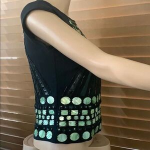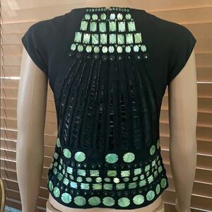 TORT BURCH EMBELLISHED BLACK SILK BLOUSE SIZE 2