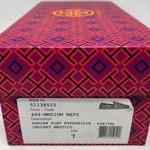 TORY BURCH ESPADRILLES FLAT MESH CROCHET FLOWER DARK NAVY MADE IN SPAIN SIZE 7