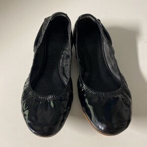 TORY BURCH Eddie Ballet Flat Black Patent Leather Slip On Round Toe Soft…