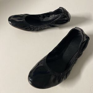 TORY BURCH Eddie Ballet Flat Black Patent Leather Slip On Round Toe Soft…