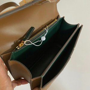 Signature hardware, scaled-up in sculptural brass. The convertible strap lets you carry it on the shoulder or crossbody.