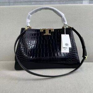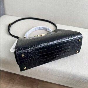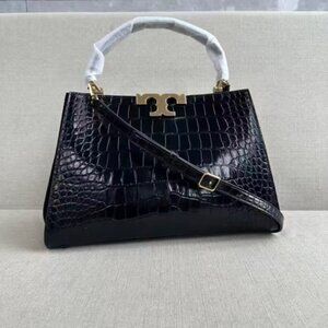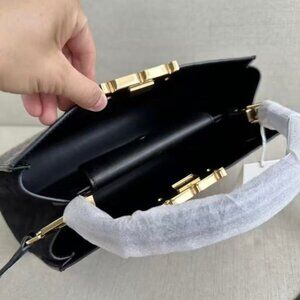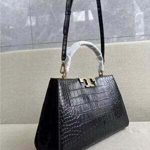 Leather top handle with 4.9" (12.5cm) drop; adjustable, removable crossbody strap with 15.8" (40cm) drop