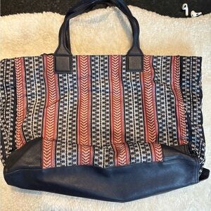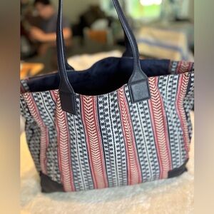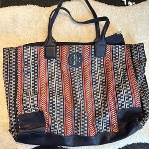 TORY BURCH “Ella” Blue/ Red Vertical Print Packable Nylon Tote