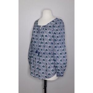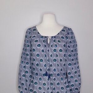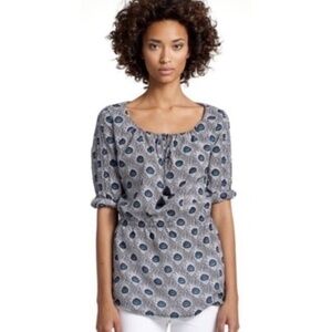 TORY BURCH Evelina Blue Peacock Feather Print Tunic Top Blouse Shirt Size 2