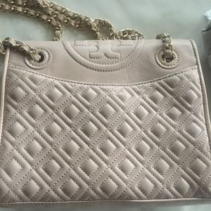 THIS GREAT FLEMING BAG WAS USED FOR 2 WEEKS. ITS IN VERY GENTLE USED CONDITION,THERE IS A ZIPPER IN THE BAG TWO POCKETS ON THE OUTSIDE PERFECT FOR YOU PHONE. THIS WAS NOT AN OUTLET BAG THIS WAS FROM NORDSTROMS. NO OBVIOUS SCRATCHES OR WEARS JUST A FEW MARKS IN THE BAG PLEASE SEE PICTURES