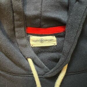 TORY BURCH FRENCH TERRY CHEVRON HOODIE IN TORY NAVY/SNOW WHITE